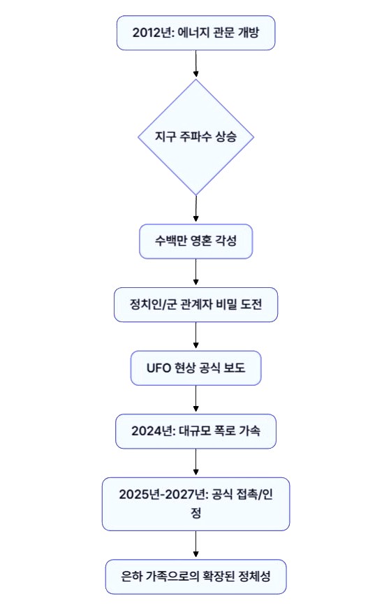 - 대폭로(Disclosure)의 시기: 2012년 에너지 관문이 열린 이후, 2024년에서 2027년 사이가 공식적인 외계 접촉이나 정부의 공식 인정이 일어날 결정적인 창이 될 것으로 보입니다.