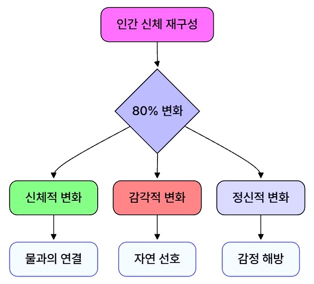 - 식습관 변화: 단순하고 자연에 가까운 음식, 깨끗한 물과 미네랄 균형에 본능적으로 끌립니다.