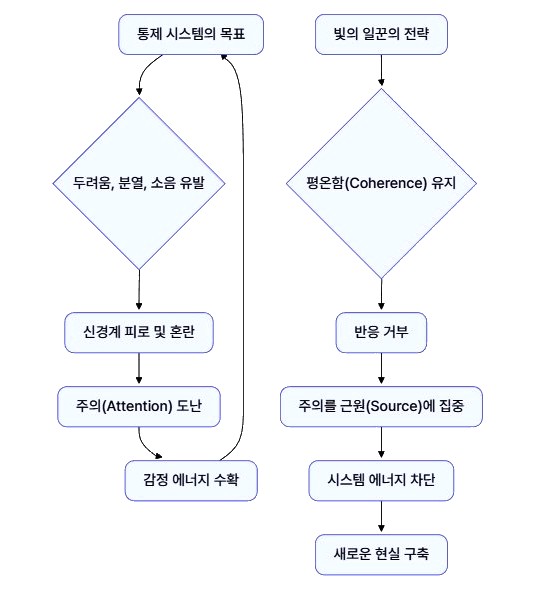 - 이 혼란 속에서 통제 시스템이 마지막으로 사용하는 무기는 두려움, 분열, 정신적 소음이야.