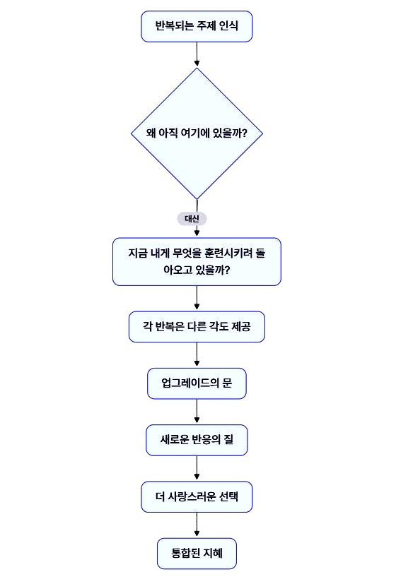 - 배움의 과정: 반복하는 것은 갇힌 것이 아니라 배우고 있다는 뜻이며, 같은 주제로 돌아오는 것은 실패가 아니라 더 우아하게 숙달하라는 초대입니다.